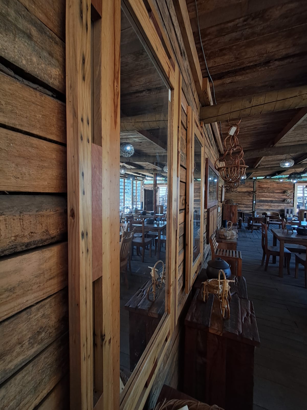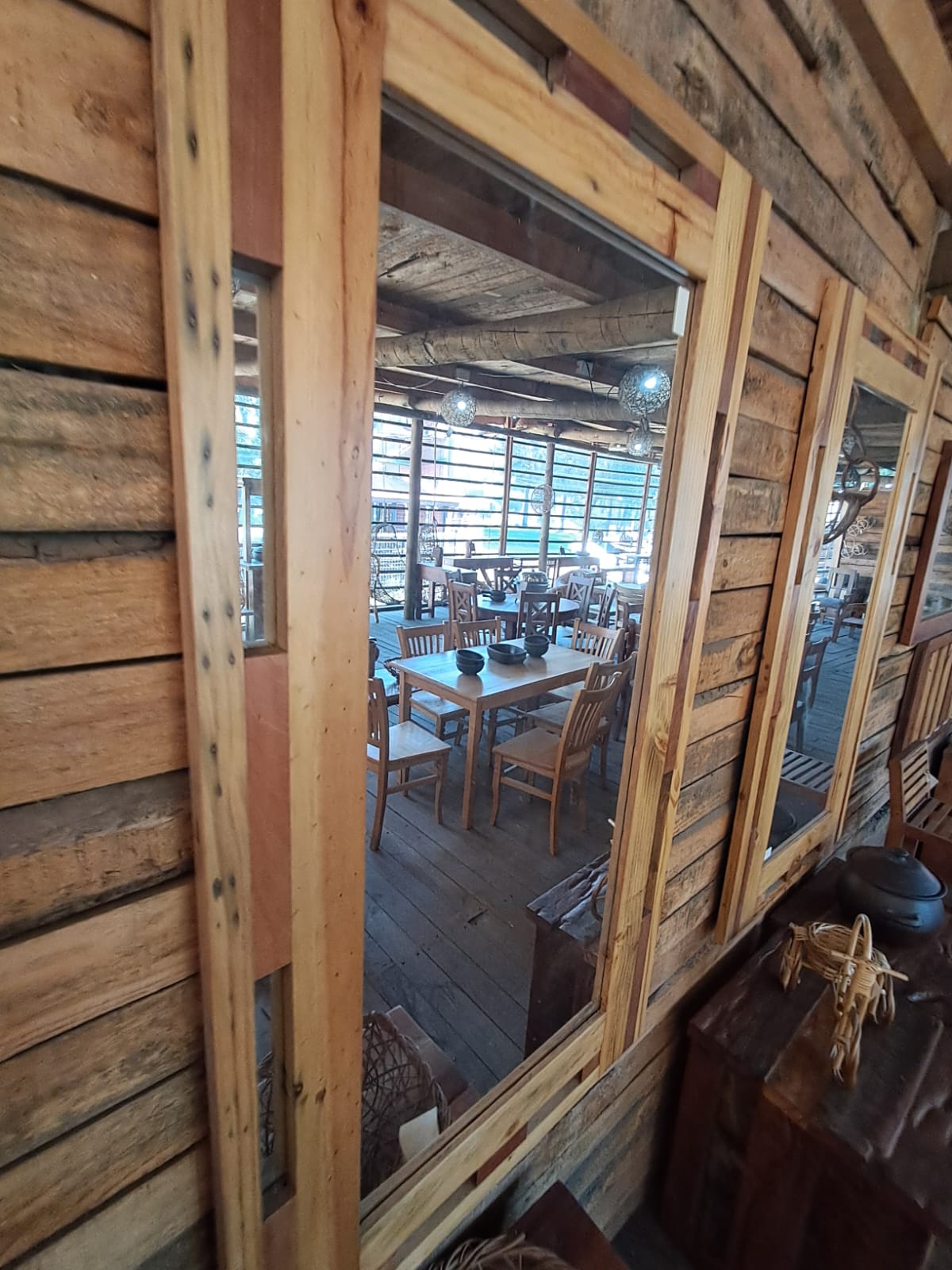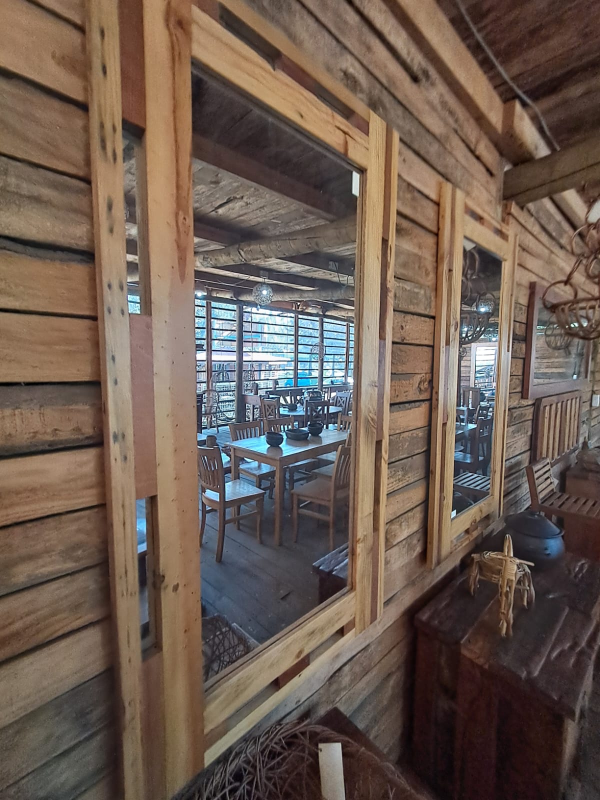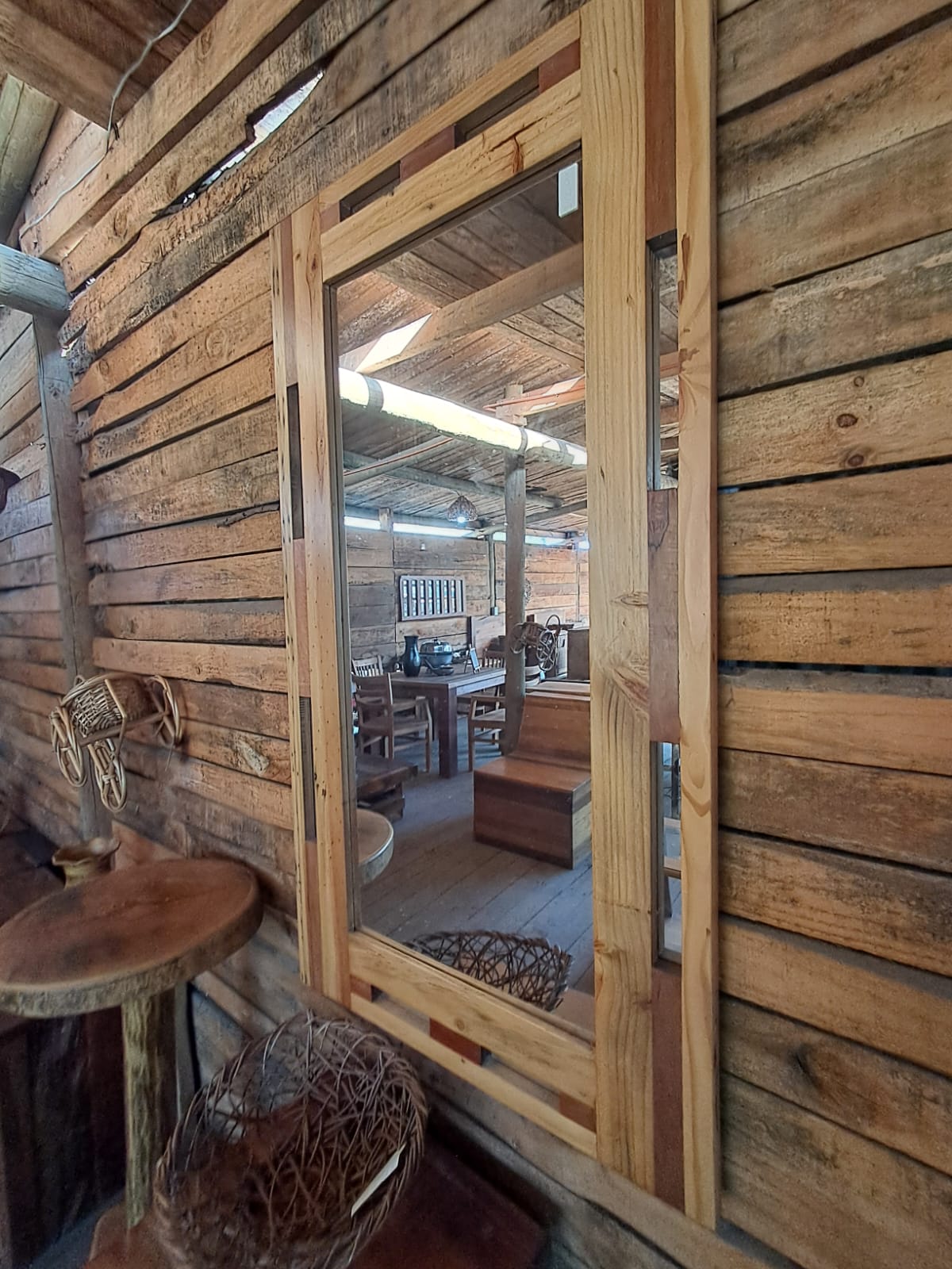 Espejo con marco en madera de roble, perfecto para ambientes campestres o de inspiración. Su diseño sencillo y funcional realza la calidez de los espacios interiores o exteriores.
