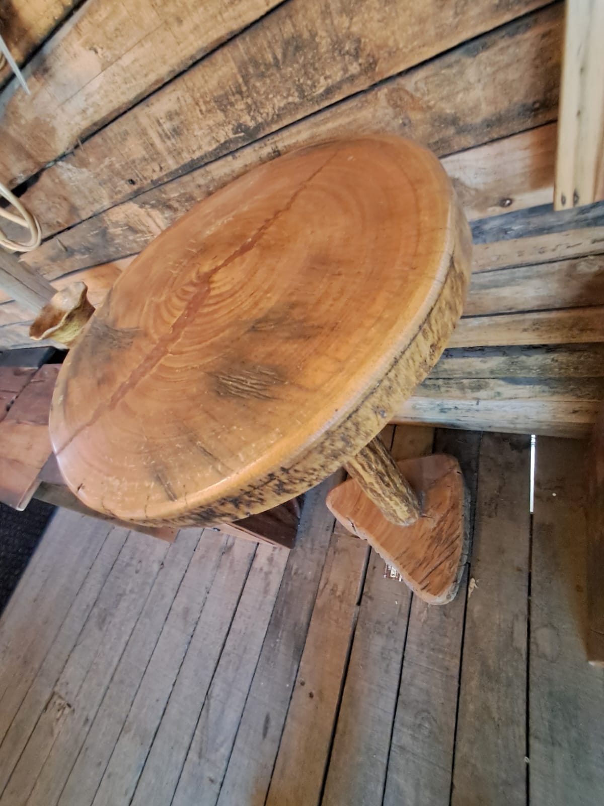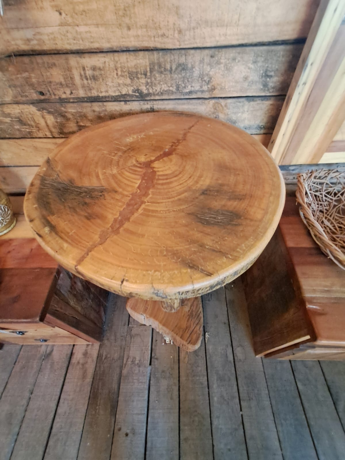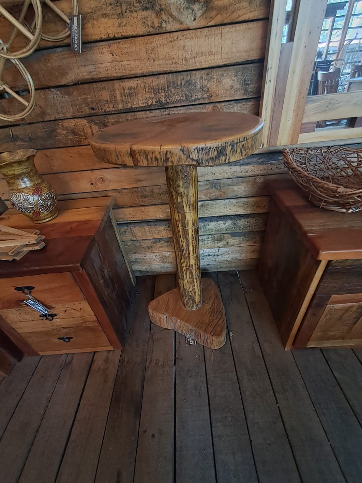 Inspirada en lo más puro del diseño rústico, esta mesa redonda destaca por su estructura robusta y base tallada tipo tronco. Ideal para terrazas, bares o rincones con carácter, aporta calidez y autenticidad a cualquier espacio.
