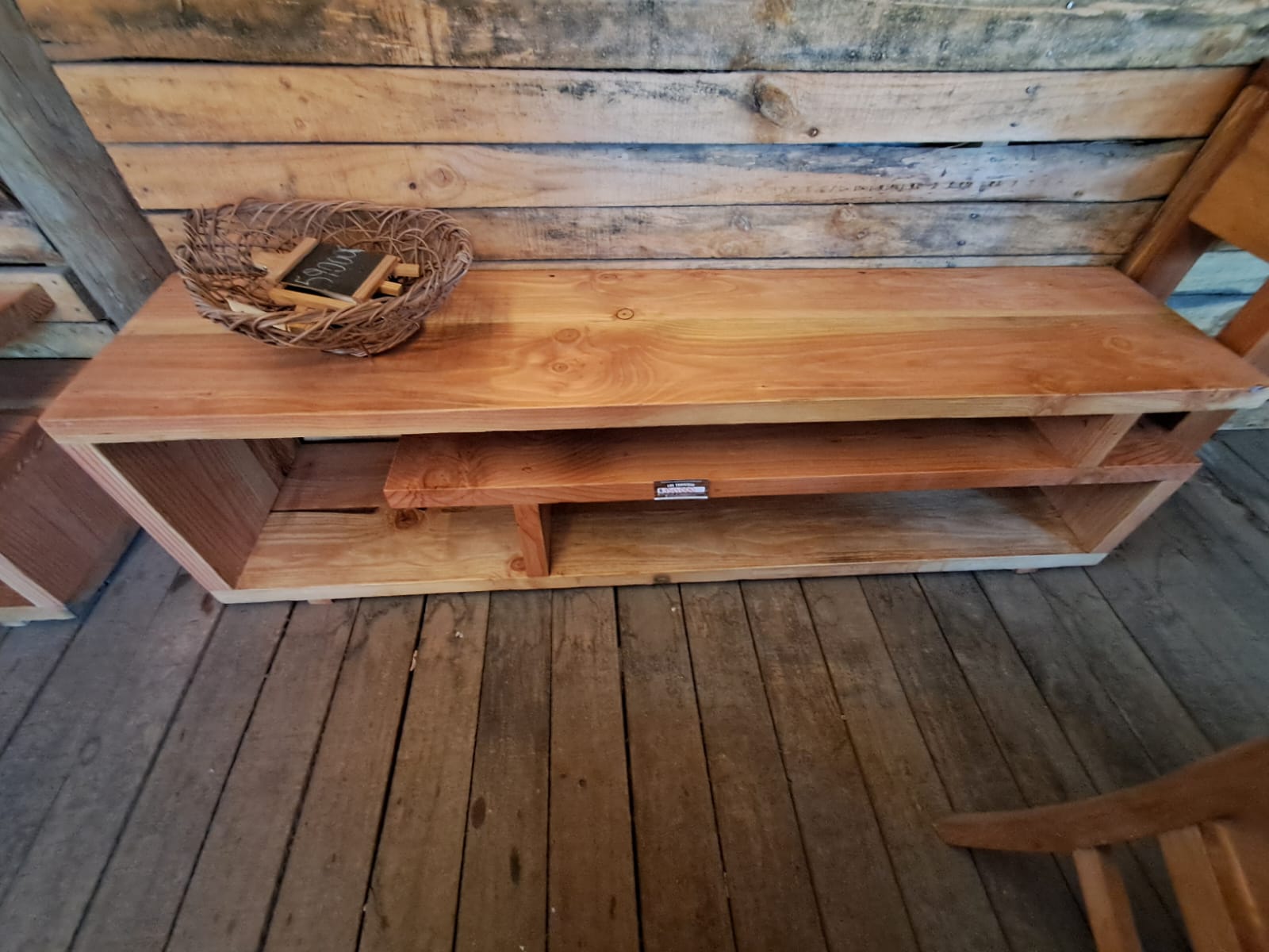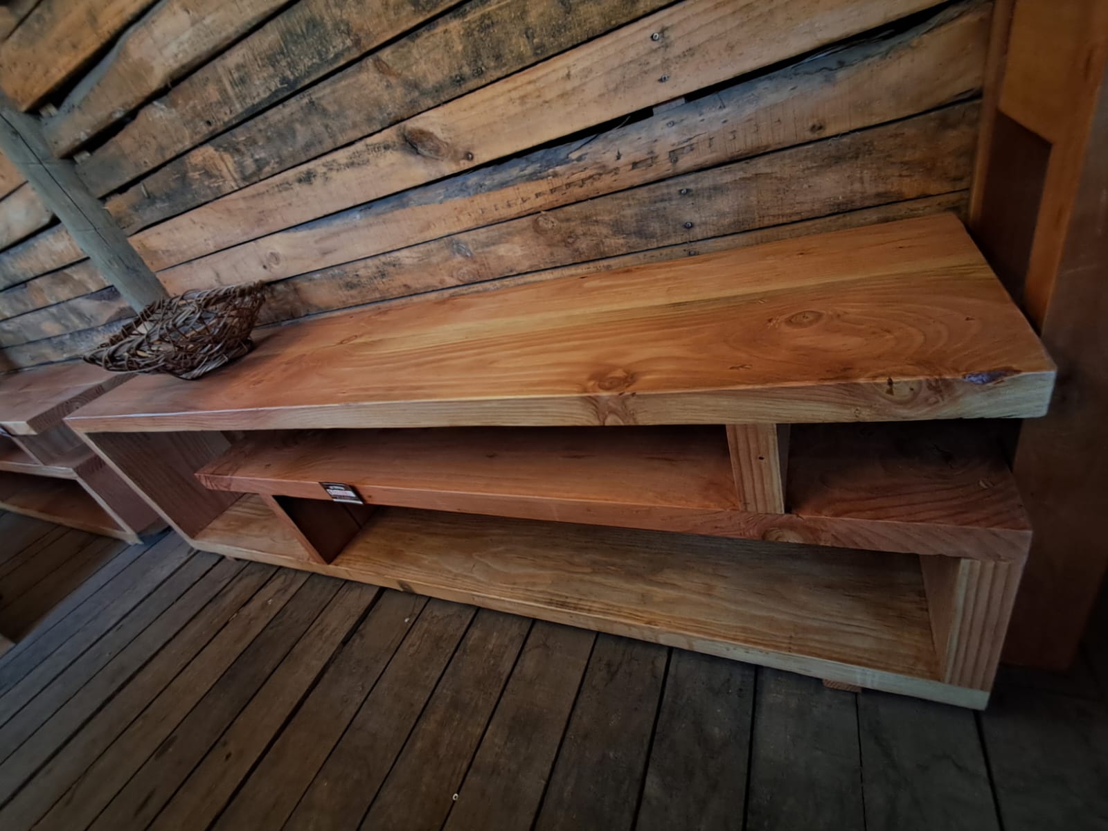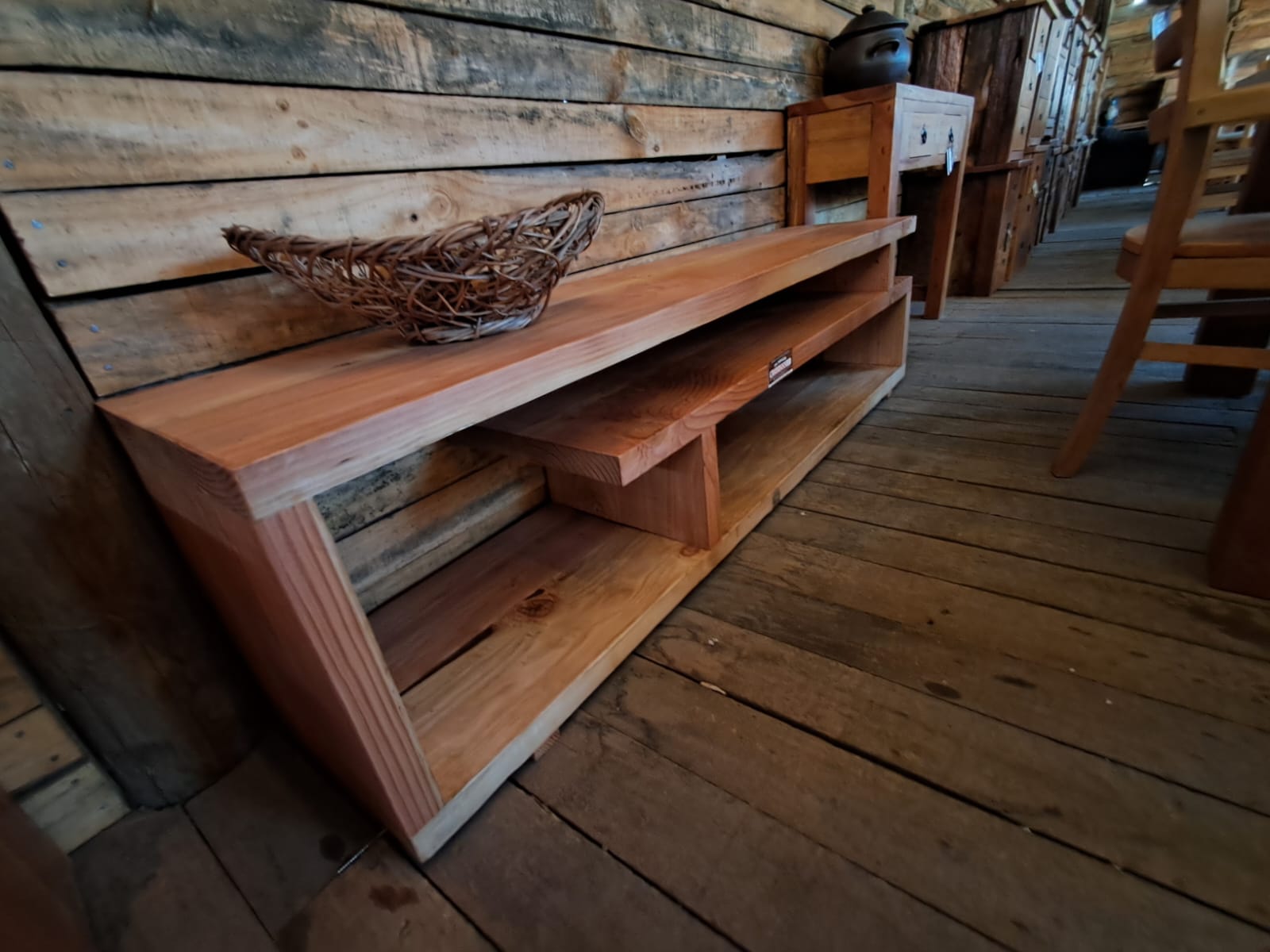 Diseñado para espacios amplios, este mueble de madera natural combina líneas rectas con funcionalidad. Ideal para colocar un televisor de gran tamaño y accesorios electrónicos, gracias a sus espaciosas divisiones inferiores. Su acabado rústico en tonos cálidos hace que se integre perfectamente en ambientes de estilo natural o bohemio.